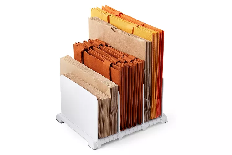 For avid cooks, a collection of reusable and disposable shopping bags often lingers in storage, awaiting their turn for reuse or recycling. If yours are overflowing drawers or entangled on hooks, this ingenious organizer might revolutionize your storage system. Equipped with four dividers, it keeps plastic, paper, and canvas shopping bags neatly arranged, allowing you to effortlessly locate and grab the ones you need before heading to the grocery store or farmer’s market.