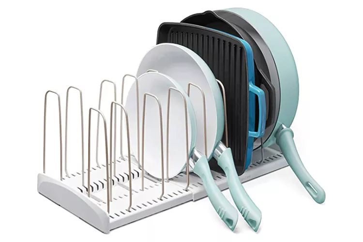 When your favorite skillet is buried under a heap of stock pots and pans, it’s a sign to revamp your cookware drawer. This practical rack allows you to store items on their sides, enabling access to multiple pieces at once, while its metal dividers prevent clanking or scratching. Not limited to pans, it can also accommodate pot lids, cooling racks, and cutting boards. The setup process is remarkably easy, making organization hassle-free.