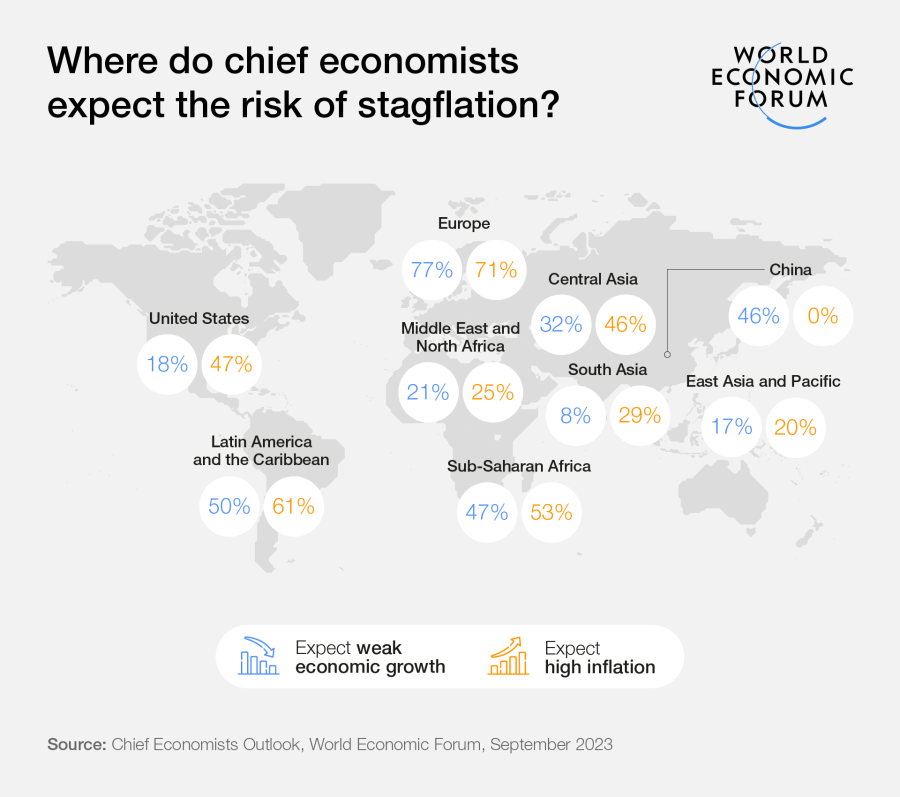 The upcoming volatility is anticipated to stem largely from geopolitics, as highlighted by chief economists surveyed for the World Economic Forum’s recent Chief Economists Outlook. However, the report indicates a nuanced scenario, hinting at potential positive changes such as decreases in inflation rates and a deceleration in interest rate hikes. Here are the main takeaways from the September 2023 edition of the Chief Economists Outlook.